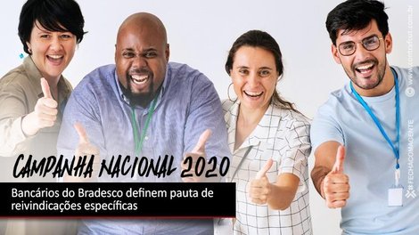 Os bancários do Bradesco definiram, na noite desta terça-feira (14), a pauta de reivindicações específicas para a Campanha Nacional 2020. O Encontro Nacional dos Funcionários do Banco Bradesco, realizado por videoconferência, também debateu pontos gerais da campanha, que serão apresentados na Conferência Nacional dos Bancários, que será realizada nesta sexta-feira (17) e sábado (18).