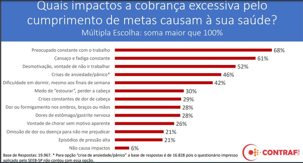 Quando questionados se a cobrança excessiva para o cumprimento de metas impacta na saúde, as respostas também foram preocupantes: