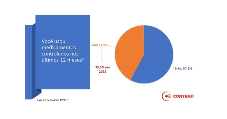 Como consequência do crescimento dos adoecimentos mentais, mostra a pesquisa, houve um aumento de bancários e bancárias que tomam medicamentos controlados nos últimos 12 meses. O índice passou de 35,5%, na consulta feita em 2022, para 41,9% na deste ano.