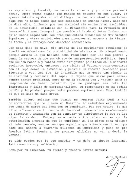 Acontece que a checagem foi realizada por meio de uma nota curta do Vatican News, publicada em português, que afirmava que o responsável por tentar entregar o presente, o advogado Juan Grabois, barrado pela Polícia Federal, era um "ex-consultor" e que sua visita tinha "caráter pessoal". Entretanto, algumas horas depois da nota, e de as agências, de forma apressada, terem decidido que se tratava de fake news, o portal do Vaticano apagou a nota e a corrigiu, informando que, de fato, Grabois é consultor de um conselho papal e que a nota anterior trazia erros de tradução.