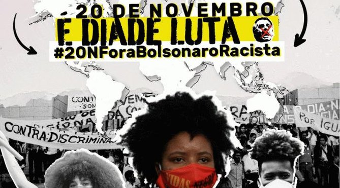 Além das ruas, os protestos serão feitos também nas redes sociais com a hashtag #20NForaBolsonaroRacista.