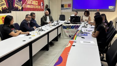 Também participaram da audiência a diretora do Sindicato de BH Paula Moreira, que integra a COE do Santander, a coordenadora da COE Wanessa Queiroz, o presidente da CUT Minas, Jairo Nogueira, o presidente do Sindicato dos Bancários de Patos de Minas, César Rodrigues, e o superintendente regional do Ministério do Trabalho em Minas Gerais, Carlos Calazans.