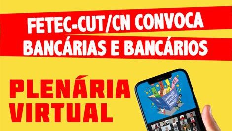 A Federação dos Bancários do Centro-Norte (Fetec-CUT/CN) convoca os bancários e bancárias das bases dos sindicatos filiados a participarem nesta segunda-feira dia 26, às 19h (horário de Brasília), de uma plenária virtual para discutir as negociações da Campanha Nacional de 2024 com a Fenaban e o que fazer diante do impasse provocado pela intransigência dos banqueiros.