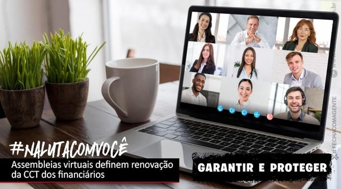 Sindicatos de todo o Brasil realizam assembleias virtuais entre às 15h desta quarta-feira (21) e às 18h de quinta-feira (22) para decidir sobre a proposta renovação da Convenção Coletiva de Trabalho (CCT) por dois anos negociada entre a Comissão de Organização dos Financiários e a Federação Interestadual das Instituições de Crédito, Financiamento e Investimento (Fenacrefi).
