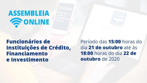 Funcionários de Instituições de Crédito, Financiamento e Investimento, associados ou não, da base do SEEBCG-MS, já podem participar da assembleia que se realiza de forma remota/virtual, por conta da pandemia do coronavírus. A votação acontece das 15h desta quarta-feira, dia 21 de outubro, até às 18h da quinta-feira, dia 22 de outubro de 2020.