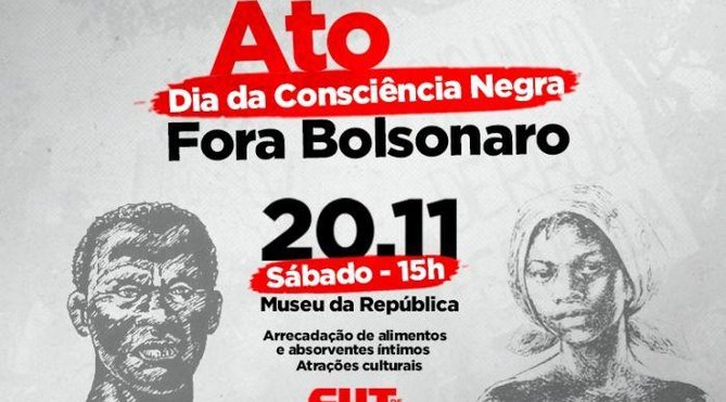 O dia 20 – #ForaBolsonaroRacista marca a luta de Zumbi dos Palmares, que tinha como objetivo construir uma sociedade onde todos e todas tivessem as mesmas oportunidades. O movimento negro tem esse objetivo – quer uma sociedade com oportunidades, salários, condições e acessos.