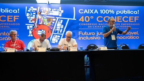 A última mesa do dia de debates do 40º Congresso Nacional dos Empregados da Caixa (Conecef) teve como tema a Funcef e foi coordenada pelo diretor da Federação dos Bancários da Bahia e Sergipe, Emanoel Souza de Jesus.