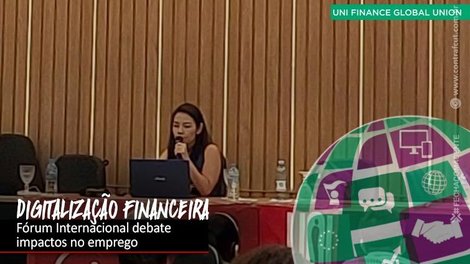 Os organizadores do Fórum Sindical Internacional reservaram a tarde desta sexta-feira (27) para 2ª Reunião da Comissão Trilateral para a Digitalização Financeira. O encontro, realizado na sede da Confederação Nacional dos Trabalhadores do Ramo Financeiro (Contraf-CUT), em São Paulo, começou com uma apresentação de Cátia Uehara, técnica da Subseção do Departamento Intersindical de Estatística e Estudos Socioeconômicos (Dieese) do Sindicato dos Bancários de São Paulo.