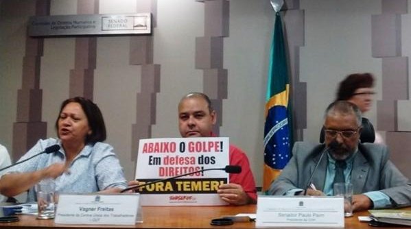 O presidente da CUT Nacional, Vagner Freitas, louvou a criação da Frente, mas alertou para a necessidade do trabalho do grupo misto ser associado às ações nas ruas do movimento sindical e social. “A maior vítima desse golpe de Estado (promovido no Congresso para afastamento da presidente Dilma) é a classe trabalhadora. Esse golpe só foi praticado para retirar direitos. Só com a classe trabalhadora organizada e fazendo greves que vamos garantir nossos direitos”, disse.