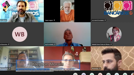 O encontro se deu de forma remota, entre 16h e 19h. Participaram os deputados José Carlos (PT-MA), coordenador da Frente Parlamentar MIsta em Defesa dos Bancos públicos, Pompeo de Mattos (PDT-RS) e Erika Kokay (PT-DF); o senador Jaques Wagner (PT-BA); a representante eleita dos funcionários para o Conselho de Administração do BB (Caref), Débora Fonseca; e os dirigentes de entidades Kleytton Morais, presidente do Sindicato; Raffaella Gomes, diretora do Sindicato; João Fukunaga, dirigente da Contraf-CUT e coordenador da Comissão de Empresa dos Funcionários do Banco do Brasil; Isa Noronha, presidenta da FAABB; Reinaldo Fujimoto, presidente da ANABB; e Loreni de Senger, presidenta do Conselho Administrativo da AAFBB. Manoel Mello Netto representou o deputado João Daniel (PT-SE), coordenador do Núcleo Agrário da bancada do PT na Câmara Federal.