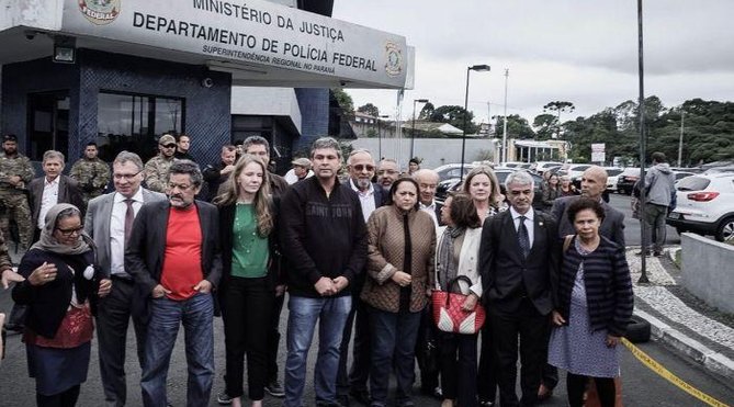 Onze senadores da Comissão de Direitos Humanos visitaram na tarde desta terça-feira (17) o ex-presidente Luiz Inácio Lula da Silva, na Sede da Superintendência da Polícia Federal, em Curitiba, onde ele é mantido como preso político há dez dias.