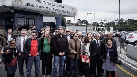 Onze senadores da Comissão de Direitos Humanos visitaram na tarde desta terça-feira (17) o ex-presidente Luiz Inácio Lula da Silva, na Sede da Superintendência da Polícia Federal, em Curitiba, onde ele é mantido como preso político há dez dias.