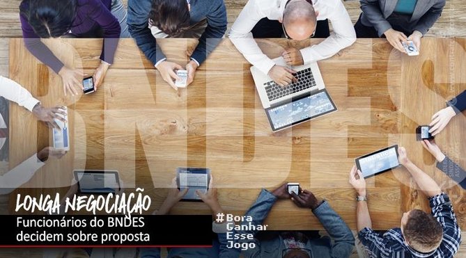 As entidades sindicais e as associações dos funcionários do Banco Nacional de Desenvolvimento Econômico e Social (BNDES) realizam, nesta segunda-feira, dia 12, uma assembleia para decidir se aprova a proposta apresentada na última reunião de conciliação com o banco, mediada pelo Tribunal Superior do Trabalho (TST). A votação será online, pelo sistema Vota Bem, das 13 às 20 horas. Votam os funcionários do Sistema BNDES, que inclui, além do banco, as subsidiárias BNDESPAR e Finame.