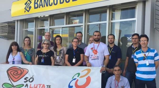 Os bancários do Banco do Brasil de todo o país realizaram, nesta quarta-feira (7), o Dia Nacional de Luta. Agências fechadas, atrasos no expediente e manifestações em frente aos locais de trabalho foram algumas das ações. O ato é em protesto às negativas e falta de resposta do Banco do Brasil para as reivindicações de proteção dos funcionários, em função do processo de reestruturação do banco).
