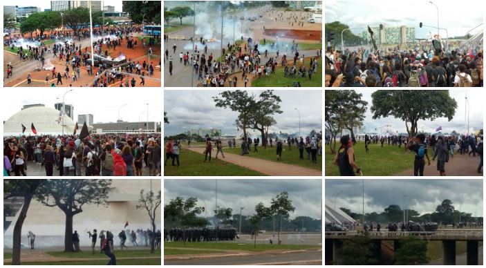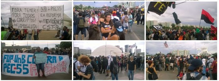 Vindos de diversos estados, as centenas de manifestantes queriam apenas exercer o direito de protestar contra o congelamento de investimentos públicos em educação, saúde e programas sociais por 20 anos. Revistados e intimidados durante todo o dia pela polícia, que montou barreiras a partir da Rodoviária, os manifestantes foram acuados durante a tarde em torno da Catedral.