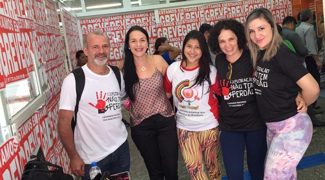 O setor que mais lucra no país ofereceu um vergonhoso reajuste de 5,5% aos trabalhadores - o que representa perda de 4% diante da inflação - e um abono de R$ 2,5 mil que nem é este valor mesmo já que sobre ele incide imposto de renda e INSS. E é pago uma vez só, ou seja, não tem efeito nos cálculos do FGTS, 13º salário ou da aposentadoria.