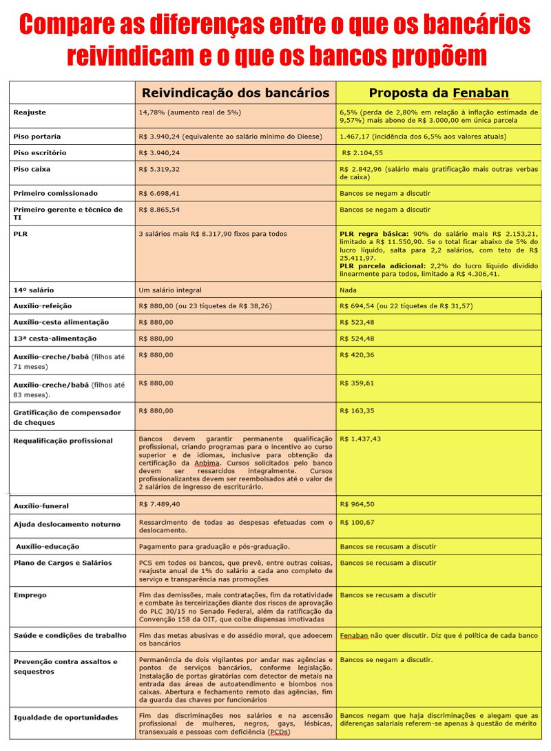 Para a Fetec-CUT/CN , essa estratégia dos bancos é semelhante à empregada por eles durante o governo Fernando Henrique Cardoso e pode dividir a categoria, abrindo caminho para impor mais perdas aos bancários no futuro. Segundo cálculo do Dieese, com a política de reajustes abaixo da inflação e concessão de abonos, de 1995 a 2002 (os dois governos FHC) os bancários dos bancos privados tiveram perdas de 4,60% nos salários, os do Banco do Brasil 33,53% e os empregados da Caixa 37,38%.