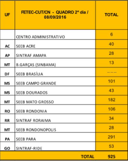 Na região Centro Norte, exceto Brasília, que está fazendo paralisações por região, a greve fechou 925 agências nas outras 11 bases sindicais da Fetec-CUT/CN, o que dá um aumento de 22% comparado com o primeiro dia.
