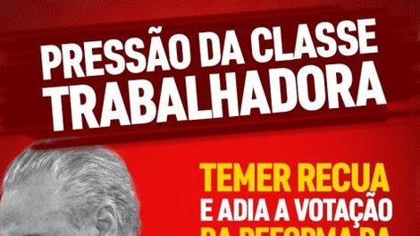 A pressão do movimento sindical contra a Reforma da Previdência, que levaria a uma derrota de Temer, obrigou o governo a recuar e retirar da pauta da Câmara dos Deputados a nova proposta de desmonte da aposentadoria, que deveria ser colocada em votação no próximo dia 6.