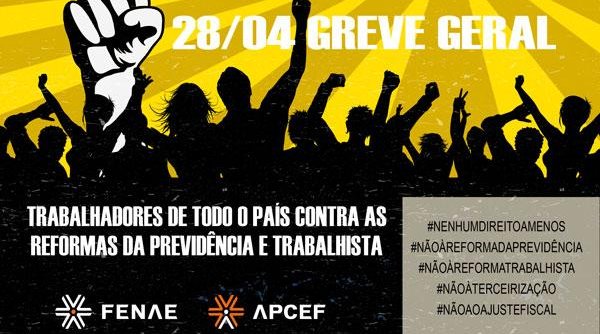 A mobilização continua, sem tréguas! A Greve Geral de 28 de abril, convocada pela Central Única dos Trabalhadores (CUT) e demais centrais sindicais do país, irá inaugurar um novo momento na luta social no Brasil. Contra a proposta de reformas da Previdência e trabalhista, contra a terceirização irrestrita e em defesa dos bancos públicos, trabalhadores e trabalhadoras do Brasil inteiro vão cruzar os braços por nenhum direito a menos. A recomendação é para que todas as categorias façam a sua parte, ocupando as ruas sem vacilação para derrubar as reformas antipopulares e apresentar um programa de democratização radical do sistema político.