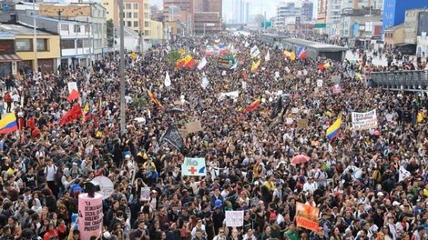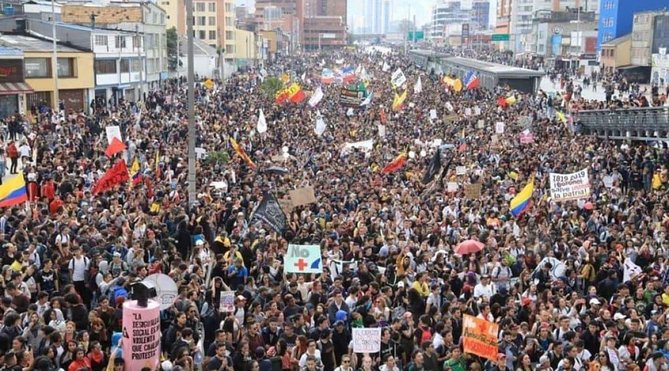 A tentativa da reforma tributária, segundo ela, “foi a grande pauta, uma proposta que visava tirar recurso da população da classe média baixa para abastecer o grande capital”. Porém, uma vez o movimento iniciado, outras questões vieram à tona. “Não é só uma greve com a pauta da reforma tributária, mas também pela implementação do acordo de paz, contra a reforma da saúde que visa a privarização, exigindo oportunidades de educação e emprego, principalmente para a juventude negra, contra o feminicídio – a gente teve no começo do ano mais de 500 casos de feminicídio – contra a violência na população trans e toda a população LGBT. O assassinato de lideranças sociais – esse ano temos mais de 300 líderes de oposição assassinados pelo governo – o glifosato. Temos uma grande lista, todas relacionadas com a defesa dos direitos e da vida digna”.