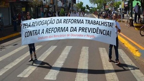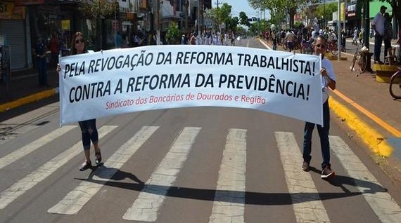 O Sindicato dos Bancários e Trabalhadores do Ramo Financeiro de Dourados e Região, além de apoiar todas as outras pautas, levou para a Avenida, também, a pauta em defesa dos bancos públicos e a luta contra a reforma da previdência.