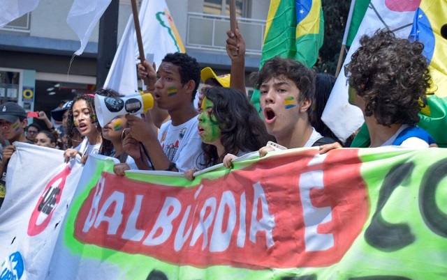 Em São Paulo, a concentração aconteceu pela manhã na Avenida Paulista. Boa parte dos manifestantes vestiu preto, em protesto contra o governo, e entre suas bandeiras destacavam-se a luta por direitos e em defesa da educação e da Amazônia. Vestidos de preto, estudantes gritavam “cara pintada voltou”, fazendo referências aos protestos pelo impeachment do então presidente Fernando Collor, em 1992.