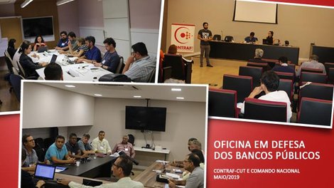 A oficina sobre a importância dos bancos públicos para o desenvolvimento socioeconômico do país continuou na tarde desta quinta-feira (30), na sede da Confederação Nacional dos Trabalhadores do Ramo Financeiro (Contraf-CUT), em São Paulo. Além dos membros do Comando Nacional dos Bancários, participaram da atividade dirigentes da Comissão de Empresa dos Funcionários do Banco do Brasil (CEBB) e do Comissão Executiva dos Empregados da Caixa (CEE/Caixa). “