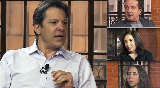 Mônica, ao lado da economista Laura Carvalho, que trabalha no plano de governo do candidato Guilherme Boulos, do Psol, "apertaram" Haddad durante o programa Entre Vistas, da TVT, levado ao ar na noite desta terça-feria (31) e comandado por Juca Kfouri. O ex-ministro da Educação de Lula e Dilma e ex-prefeito de São Paulo foi inquirido também por Juca sobre a real viabilidade da candidatura de Lula.
