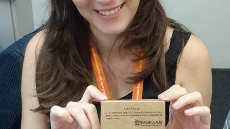 Rio Branco AC - Em homenagem ao Dia Internacional da Mulher, comemorado no dia 8 de março, a diretoria do Sindicato dos Bancários do Acre anda visitando desde a terça-feira (10) as agências de Rio Branco para presentear as bancárias com um porta-batom personalizado.