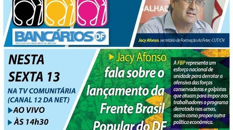 Brasília - Em defesa da democracia e dos direitos trabalhistas, entidades do movimento social, político e sindical criaram a Frente Brasil Popular do Distrito Federal (FBP). Para falar sobre o assunto, o programa TV Bancários recebe o secretário de Formação da Federação dos Trabalhadores em Empresas de Crédito do Centro Norte (Fetec-CUT/CN), Jacy Afonso.