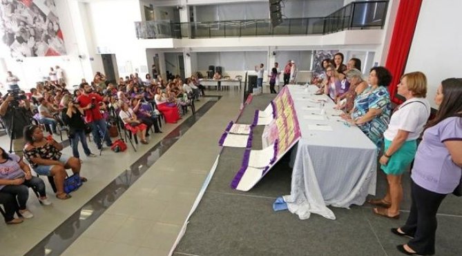 Mote: "Mais Direitos, Nenhum Retrocesso. Resistência e luta feminista" Eixo: nenhuma mulher a menos. Nenhum direito a Menos!