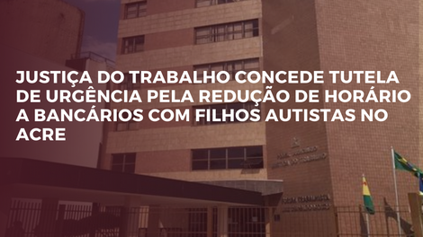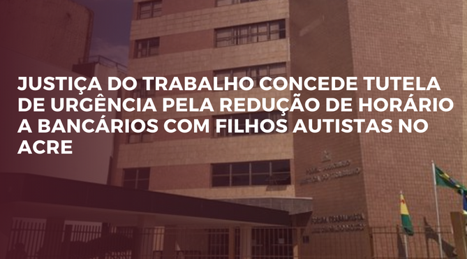 Em decisão liminar, a Justiça do Trabalho em Rio Branco (AC) deferiu tutela de urgência antecipada para determinar que a Caixa Econômica Federal promova a redução da carga horária diária em 2h, sem prejuízo do salário, aos empregados que tenham filhos diagnosticados com Transtorno do Espectro Autista (TEA).