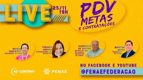 A live terá a presença do presidente da Fenae, Sergio Takemoto, a coordenadora da Comissão Executiva dos Empregados da Caixa (CEE/Caixa), Fabiana Uehara Proscholdt, o presidente da Federação Nacional das Associações dos Gestores da Caixa (Fenag), Mairton Antônio Garcia Neves e o gestor na área de Saúde e consultor da Fenae, Albucacis de Castro Pereira.