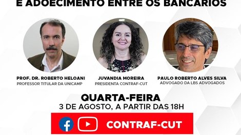 Participam do debate a presidenta da Contraf-CUT, Juvandia Moreira; o advogado do escritório LBS; Paulo Roberto Alves Silva; e o professor da Faculdade de Educação da Universidade Estadual de Campinas (Unicamp), Roberto Heloani.