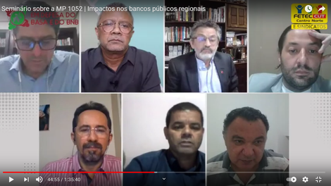 Essa foi, em síntese, a conclusão do seminário/live Impactos da MP 1052 e os Impactos nos Bancos Públicos Regionais, realizado nesta terça-feira 6 de julho pela Federação dos Bancários do Centro-Norte (Fetec-CUT), que contou com a participação do dr. Paulo Roberto, da LBS Advogados, e do senador Paulo Rocha (PT-PA). A live teve como mediador o coordenador da Comissão de Empresa do Banco da Amazônia e diretor de Imprensa da Federação, Sérgio Trindade, e teve a participação do presidente da Fetec-CUT/CN, Cleiton dos Santos, e da presidenta do Sindicato do Pará, Tatiana Cibele. Leia no final a íntegra da live.