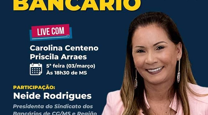 Nesta quinta-feira, dia 03 de março, a presidenta do Sindicato dos Bancários de Campo Grande-MS e Região, Neide Rodrigues, vai participar de uma live para discutir a “Revisão da vida toda na aposentadoria do bancário”. A transmissão será a partir das 18h30 (horário de MS) através do canal do Youtube do escritório Arraes e Centeno.