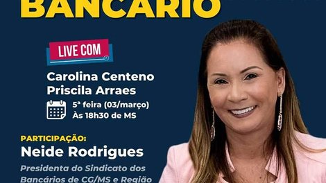 Nesta quinta-feira, dia 03 de março, a presidenta do Sindicato dos Bancários de Campo Grande-MS e Região, Neide Rodrigues, vai participar de uma live para discutir a “Revisão da vida toda na aposentadoria do bancário”. A transmissão será a partir das 18h30 (horário de MS) através do canal do Youtube do escritório Arraes e Centeno.