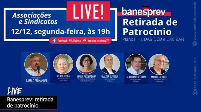 Em mais uma iniciativa para informar os participantes de fundos de pensão, a Associação dos Funcionários do Grupo Santander Banespa, Banesprev e Cabesp (Afubesp) realiza nesta segunda-feira (12), a partir das 19h, uma live para discutir a retirada de patrocínio dos planos de Benefício Definido (exceção aos da Cabesp) e transferência de gestão de alguns planos para o Santanderprevi. As medidas foram impostas pelo banco Santander e aprovadas recentemente no Conselho Deliberativo do Fundo Banespa de Seguridade Social (Banesprev), com o voto contrário dos representantes eleitos do banco.