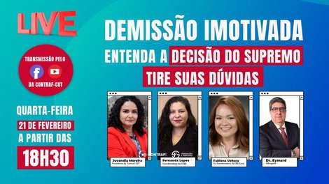 A Confederação Nacional dos Trabalhadores do Ramo Financeiro (Contraf-CUT) vai realizar uma live, na quarta-feira (21), para explicar a decisão do Supremo Tribunal Federal (STF) que considera ilegal a demissão sem motivação de empregados públicos concursados. A decisão alcança trabalhadores concursados de empresas públicas e sociedades de economia mista, como o Banco do Brasil e Caixa Econômica Federal, Petrobras e Eletrobras.