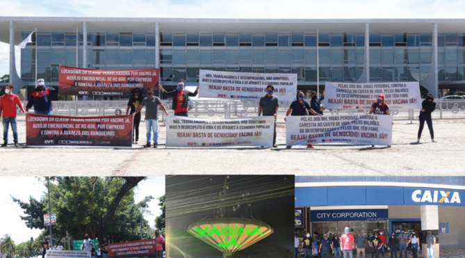 Bancários e bancárias de Brasília se uniram a trabalhadores de todo o país para um ato pela vida, por vacinação em massa, por respeito ao povo brasileiro. Nesta quarta-feira (24), em resposta à convocação das centrais sindicais para um lockdown da classe trabalhadora, o Sindicato marcou presença na Praça dos Três Poderes para denunciar a inadmissível postura contra a vida adotada pelos governos federal e distrital.