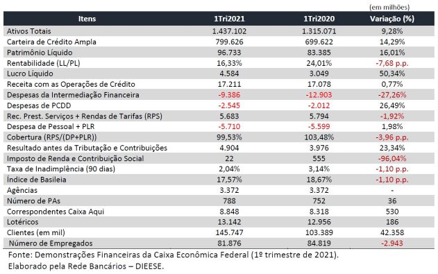 A Caixa Econômica Federal anunciou nesta quinta-feira (12) os resultados do primeiro trimestre de 2021. O banco obteve um lucro de R$ 4,6 bilhões no período, crescimento de 50,3% em relação aos três primeiros meses de 2020, alcançando uma rentabilidade (retorno sobre o patrimônio líquido – ROE) de 16,33%.