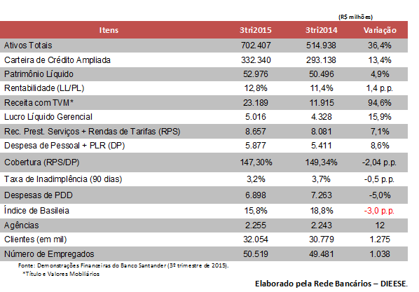 Destaques das Demonstrações Financeiras do Banco Santander – 3º trimestre de 2015