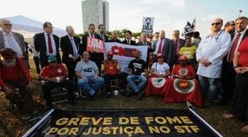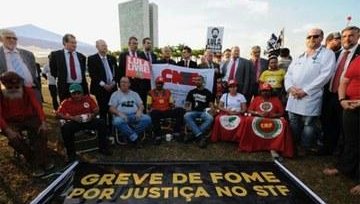 São Paulo – No oitavo dia da greve de fome, depois de muita negociação, os militantes de movimentos populares em Brasília entraram no final da tarde de hoje no Supremo Tribunal Federal (STF) para protocolar 11 pedidos de audiências, um para cada ministro da Corte. Eles foram acompanhados por vários parlamentares do PT. Vilmar Pacífico, Zonália Santos, Jaime Amorim (do MST), Rafaela Alves e Frei Sérgio Görgen (do Movimento dos Pequenos Agricultores), Luiz Gonzaga, o Gegê (da Central dos Movimentos Populares – CMP), e Leonardo Armando (do Levante Popular da Juventude) participaram do ato. Armando aderiu ao protesto extremo nesta terça (7).