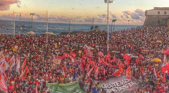 Um dos maiores cartões postais da Bahia ficou pequeno para aglutinar um verdadeiro mar de pessoas no Farol da Barra, em Salvador. Artistas consagrados no cenário nacional e internacional se uniram as centrais sindicais e mais de 80 mil trabalhadores baianos para exigir a saída do presidente Michel Temer e clamar por eleições diretas no país.