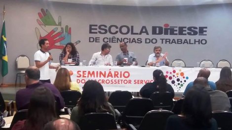 O 1º Seminário Nacional do Macrossetor de Serviços da CUT, que está sendo realizado em São Paulo com a participação da Federação dos Bancários do Centro-Norte (Fetec-CUT/CN), termina nesta quarta-feira 4 com a discussão da estratégia e organização do coletivo, eleição das coordenações nacional e regionais e definição de um plano de ação para o próximo período. Organizado pela CUT, pela Contraf-CUT e demais confederações dos ramos de trabalhadores dos vários segmentos de serviços, o encontro tem parceria da Fundação Perseu Abramo (FPA) e do Dieese (Departamento Intersindical de Estatísticas e Estudos Socioeconômicos).