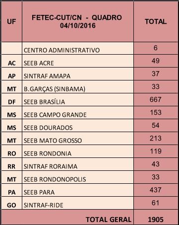 Fonte: Fetec-CUT/CN - Atualizada em 05/10/2016