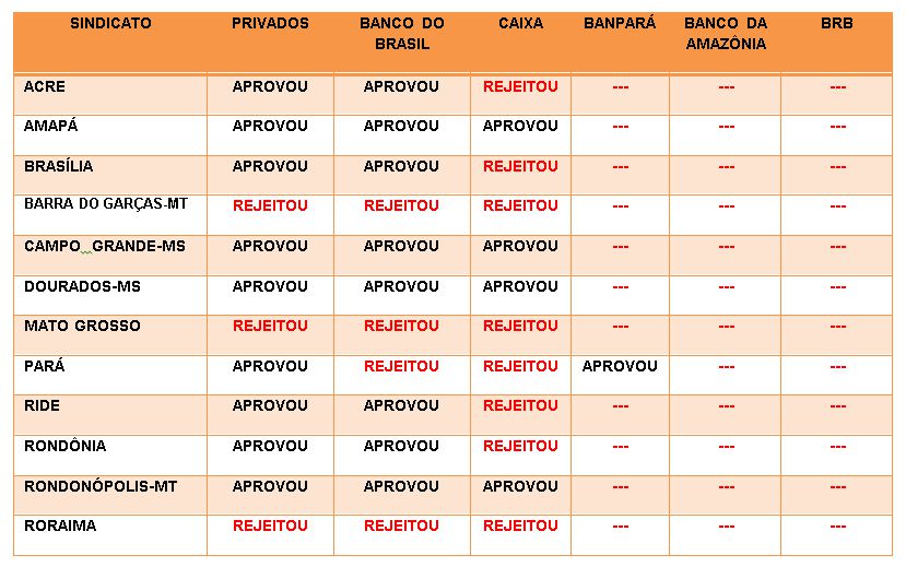 A maioria das assembleias realizadas nesta segunda-feira 26 nas bases dos sindicatos filiados à Federação Centro Norte (Fetec-CUT/CN) aprovou as propostas apresentadas pela Fenaban para a Convenção Coletiva de Trabalho (CCT) dos bancários, que inclui reajuste de 10% no salário e demais verbas e 14% no vales, e as propostas específicas do Banco do Brasil, mas rejeitou as da Caixa Econômica Federal. No total do país, a maioria aprovou tanto as proposições gerais da Fenaban como as específicas do BB e da Caixa. Em Belém, os funcionários do Banpará também aprovaram proposta específica e retornam ao trabalho. Veja aqui