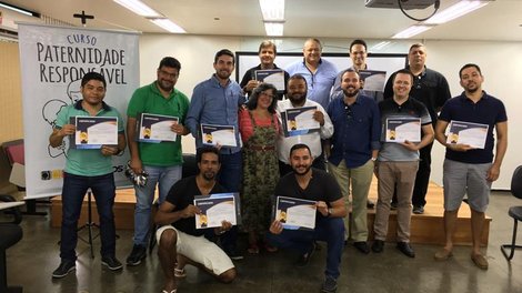 Brasília - O Sindicato certificou, na manhã desta quarta-feira (6) mais 11 papais bancários no curso de Paternidade Responsável, oferecido gratuitamente pela entidade aos sindicalizados. A certificação garante a ampliação da licença paternidade de 5 para 20 dias.