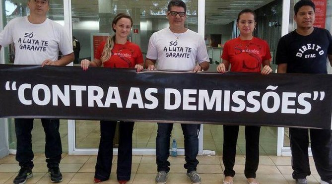 Rio Branco AC - Essa semana o SEEB-AC em protesto, fechou duas agências na capital acreana contra os desrespeitos que os bancos têm tido com os empregados, demitindo e assediando funcionários numa busca incessante de fragilizar a unidade e solidariedade entre os bancários. As agências fechadas foram a do Itaú bosque e Santander centro, com faixas e panfletos, os diretores do sindicato buscavam conscientizar os clientes e colegas sobre os abusos que vem ocorrendo com a aprovação da reforma trabalhista e deixando um recado claro para os bancos, que apesar dos lucros exorbitantes demitiram no ano de 2017 mais de 40 mil empregados e reduziram mais de 17 mil postos de trabalho. O recado foi: Se demitir o banco vai parar! Sem negociação, sem arrego!
